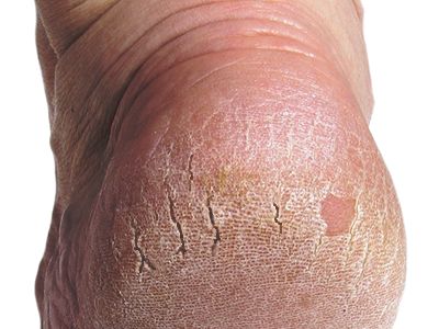 a break or slit in tissue usually at the junction of skin and mucous membrane <fissure of the lip>