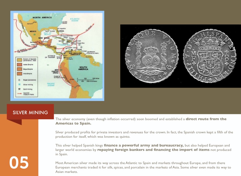 The silver economy (even though inflation occurred) soon boomed and established a direct route from the Americas to Spain.