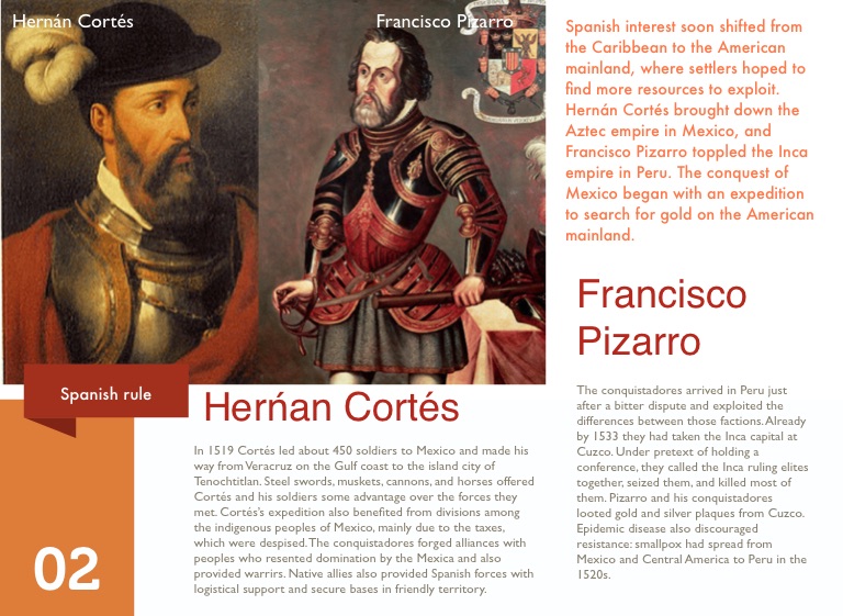 Spanish interest soon shifted from the Caribbean to the American mainland, where settlers hoped to find more resources to exploit. Hernán Cortés brought down the Aztec empire in Mexico, and Francisco Pizarro toppled the Inca empire in Peru. The conquest of Mexico began with an expedition to search for gold on the American mainland.