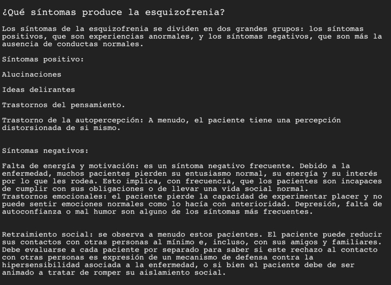 Los síntomas de la esquizofrenia se dividen en dos grandes grupos: los síntomas positivos, que son experiencias anormales, y los síntomas negativos, que son más la ausencia de conductas normales.