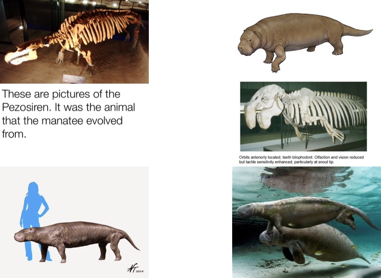 These are pictures of the Pezosiren. It was the animal that the manatee evolved from.