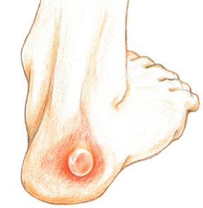 A small blister will heal on its own (pea size), but if the blister is big, drain it with a clean needle. Do not rip the skin off unless it's infected.