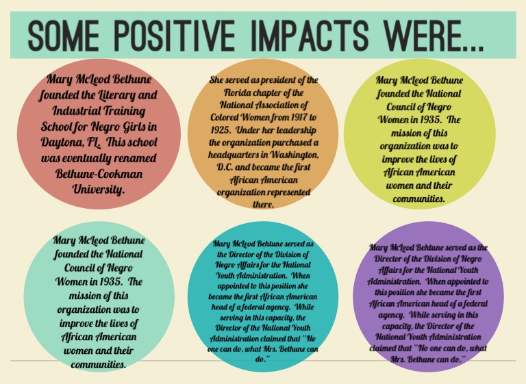 Mary McLeod Bethune founded the Literary and Industrial Training School for Negro Girls in Daytona, FL. This school was eventually renamed Bethune-Cookman University.