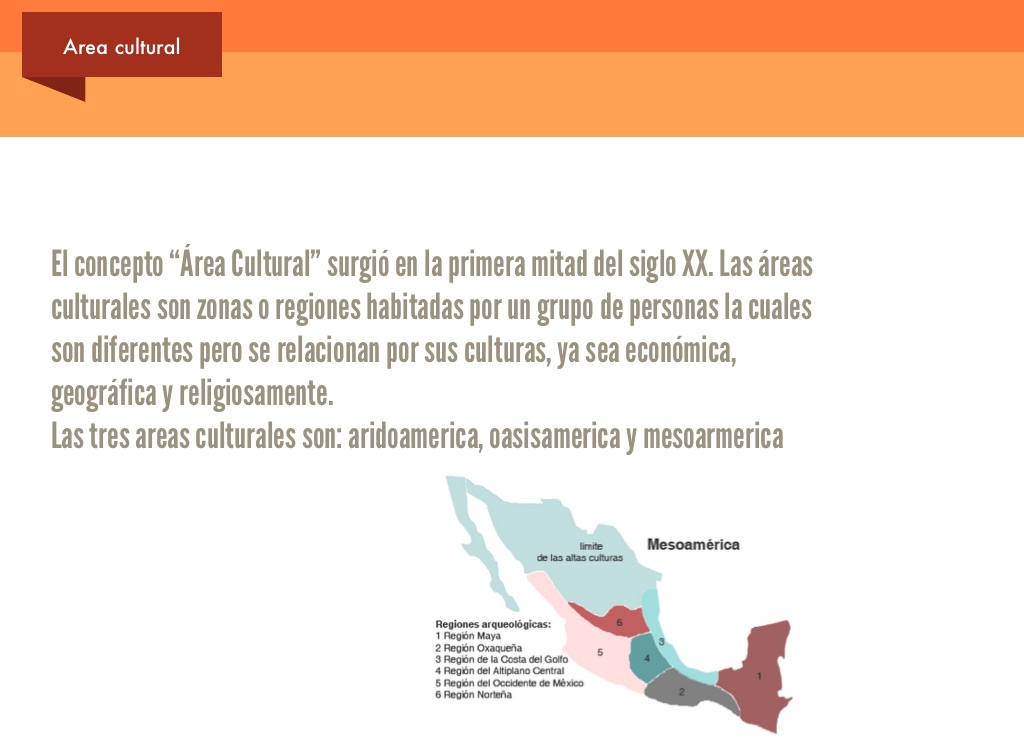 El concepto “Área Cultural” surgió en la primera mitad del siglo XX. Las áreas culturales son zonas o regiones habitadas por un grupo de personas la cuales son diferentes pero se relacionan por sus culturas, ya sea económica, geográfica y religiosamente.