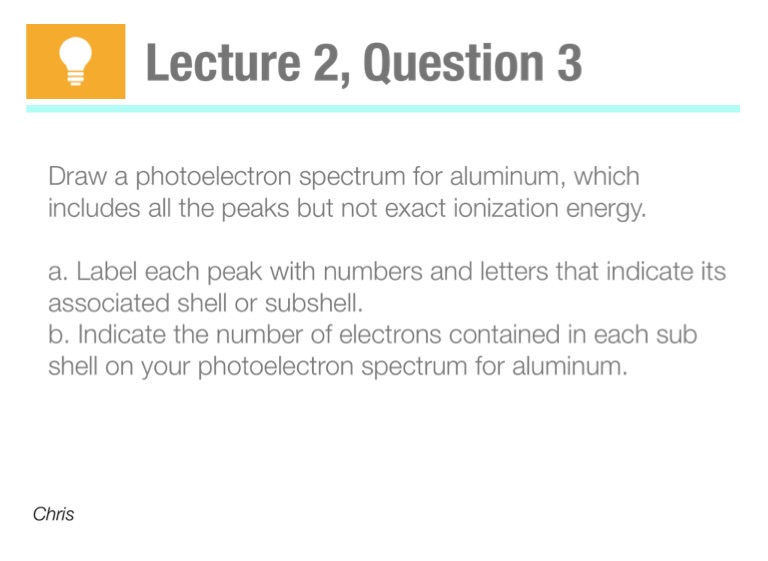 b. Indicate the number of electrons contained in each sub shell on your photoelectron spectrum for aluminum.
