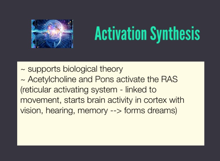 ~ Acetylcholine and Pons activate the RAS (reticular activating system - linked to movement, starts brain activity in cortex with vision, hearing, memory --> forms dreams)