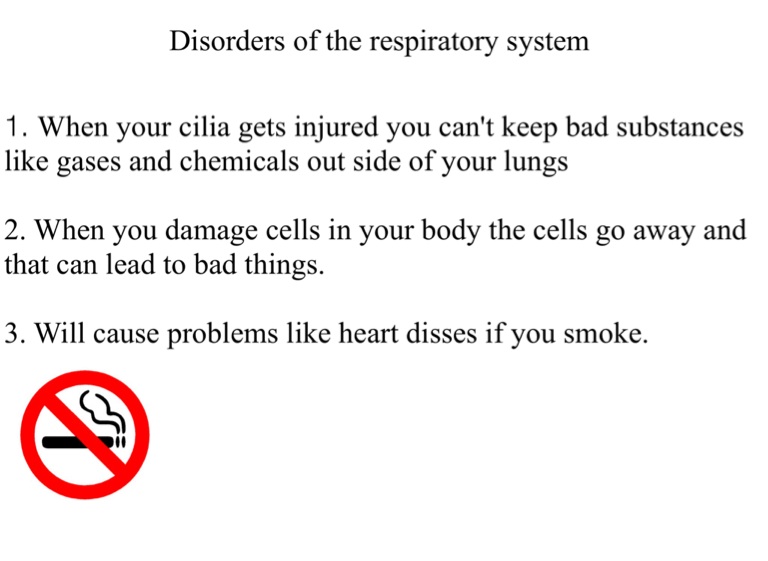 1. When your cilia gets injured you can't keep bad substances like gases and chemicals out side of your lungs