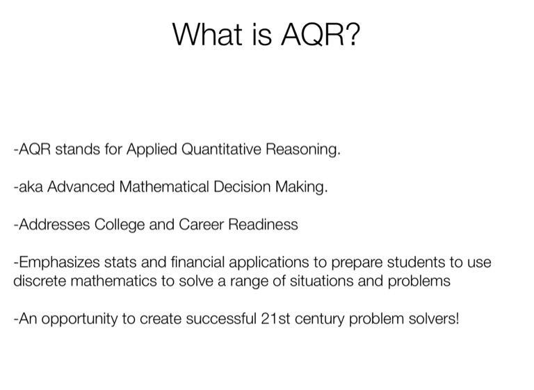 -AQR stands for Applied Quantitative Reasoning.