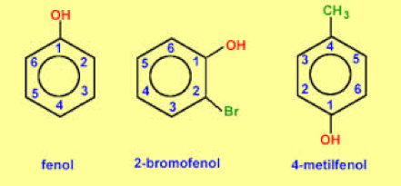 Se enumeran los carbonos del anillo bencénico partiendo desde cualquier OH y por medio de números,se indican con números la posición de los radicales, cuyos se nombran antes de la palabra Fenol