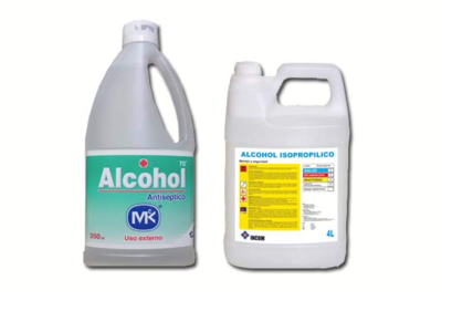 - Alcohol isopropilico(isopropanol): Al 70% y 90%