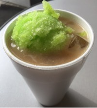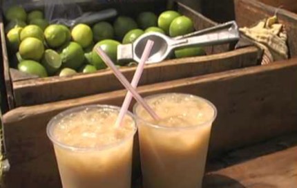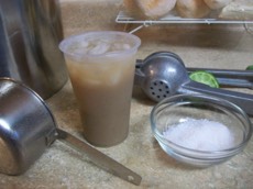 Se sirve en vaso con hielo picado, jugo de limón y sal. Se vacía en vasos para mezclar bien.