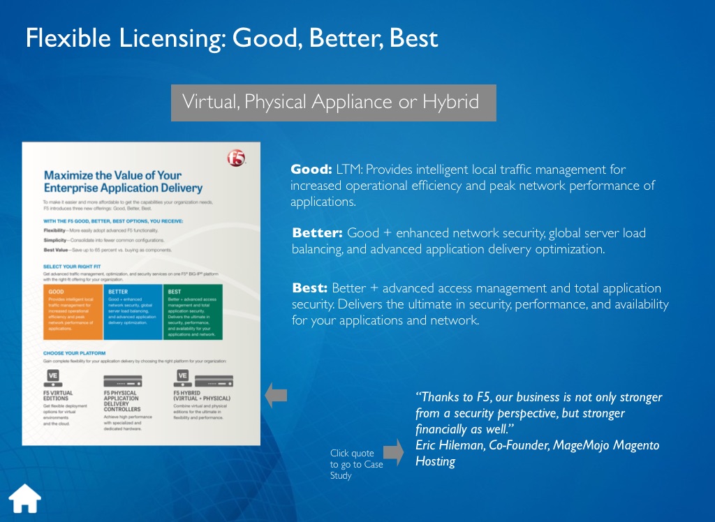 Better: Good + enhanced network security, global server load balancing, and advanced application delivery optimization.