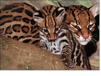 Ocelots learn to fish and swim from their parents (usually their mom). They also purr which is just something that they do naturally. Ocelots also learn to hunt from their parents as well.