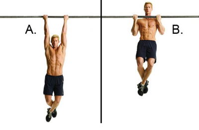 Chin ups and pull ups are both highly effective bodyweight biceps moves. For a chin up, your palms face towards yourself, while in pull ups you widen your grip and face your palms outwards.