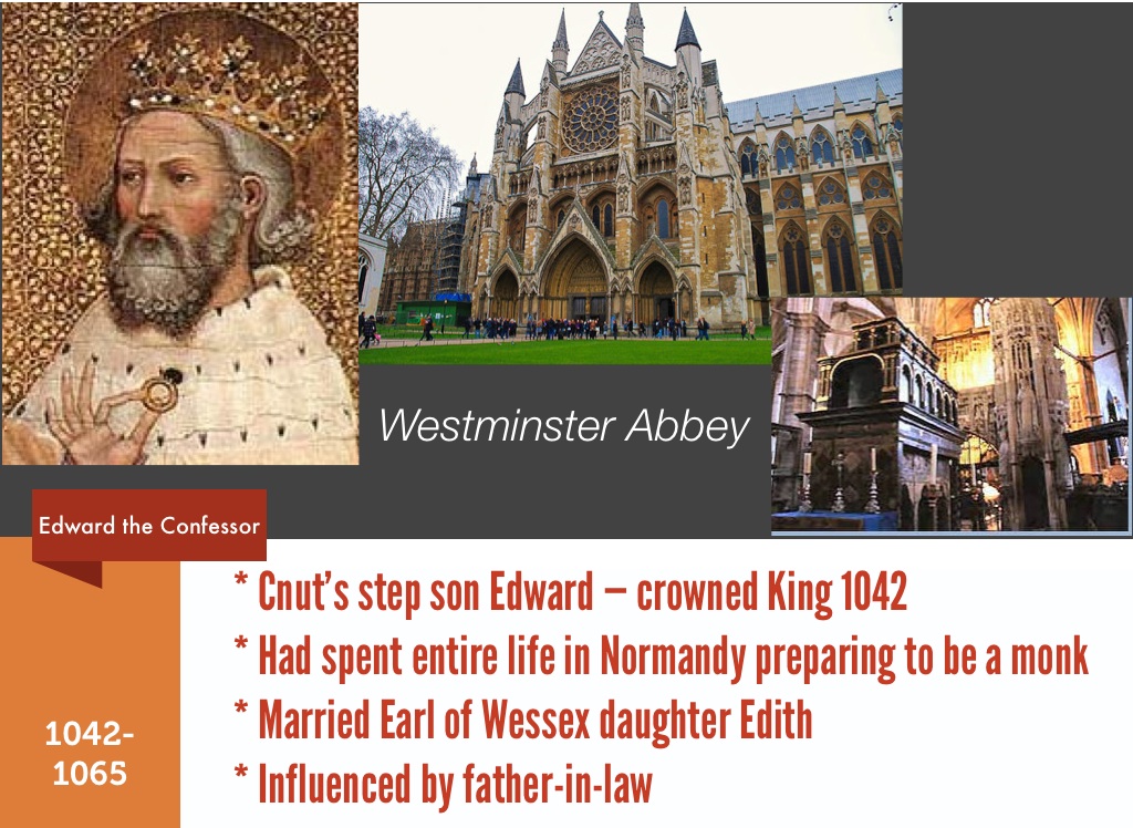 * Cnut’s step son Edward — crowned King 1042