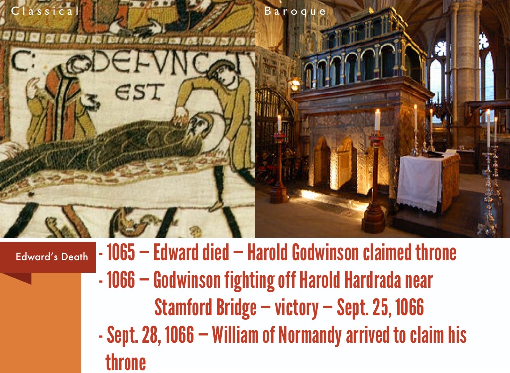 - 1065 — Edward died — Harold Godwinson claimed throne