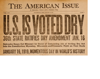 - October 1919 congress passed national Prohibition Act championed by Andrew Volstead