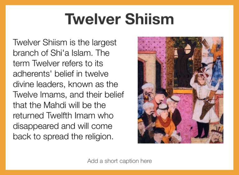 Twelver Shiism is the largest branch of Shi'a Islam. The term Twelver refers to its adherents' belief in twelve divine leaders, known as the Twelve Imams, and their belief that the Mahdi will be the returned Twelfth Imam who disappeared and will come back to spread the religion.