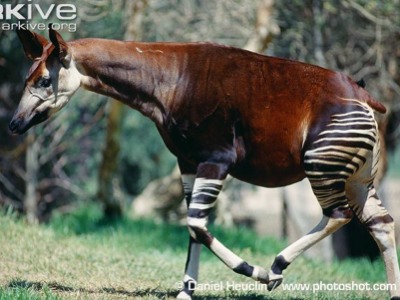 Okapis are long and they are brown with white horizontal legs. The okapi can grow up to 5-6 feet long. They can weigh up to 455-550 pounds.