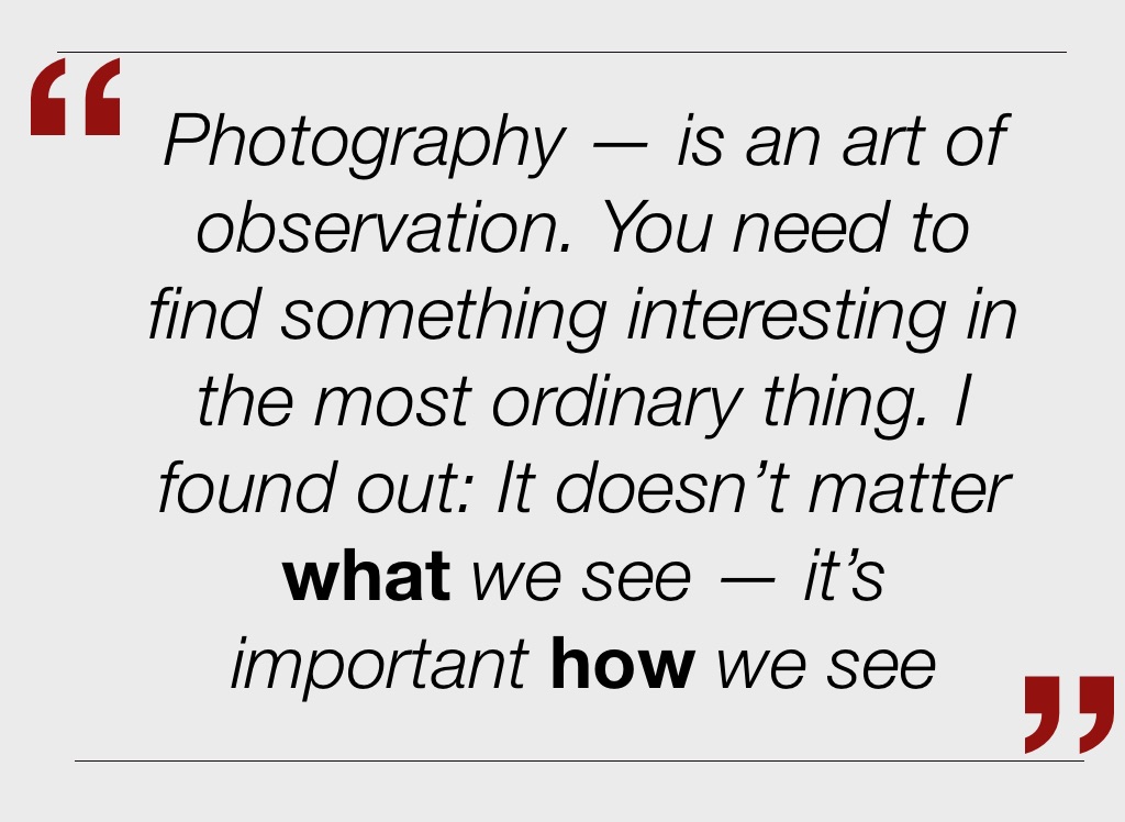 Photography — is an art of observation. You need to find something interesting in the most ordinary thing. I found out: It doesn’t matter what we see — it’s important how we see