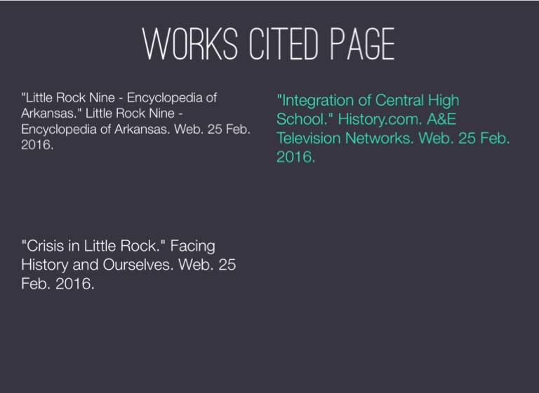 "Little Rock Nine - Encyclopedia of Arkansas." Little Rock Nine - Encyclopedia of Arkansas. Web. 25 Feb. 2016.
