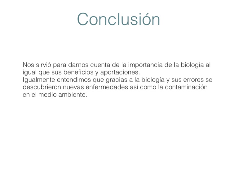 Nos sirvió para darnos cuenta de la importancia de la biología al igual que sus beneficios y aportaciones.