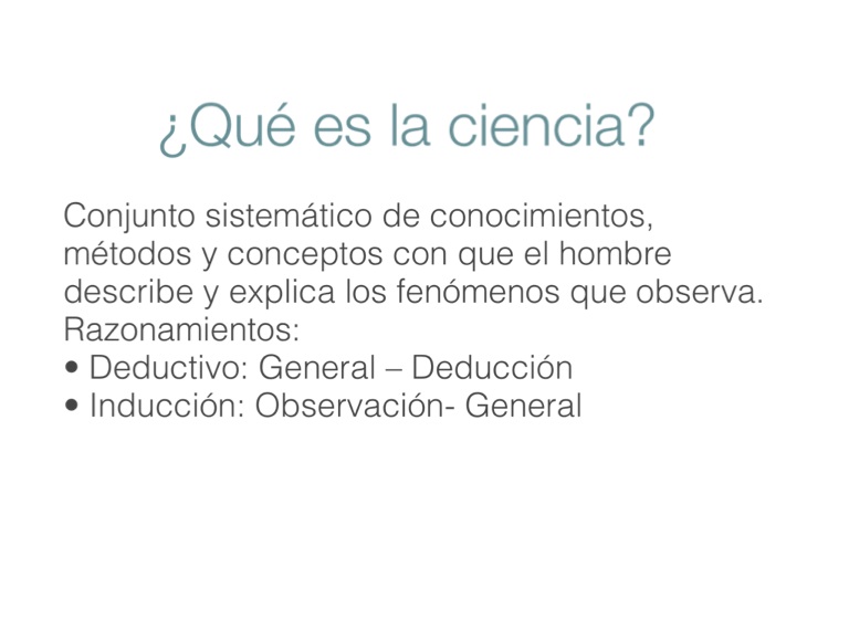 Conjunto sistemático de conocimientos, métodos y conceptos con que el hombre describe y explica los fenómenos que observa. Razonamientos: