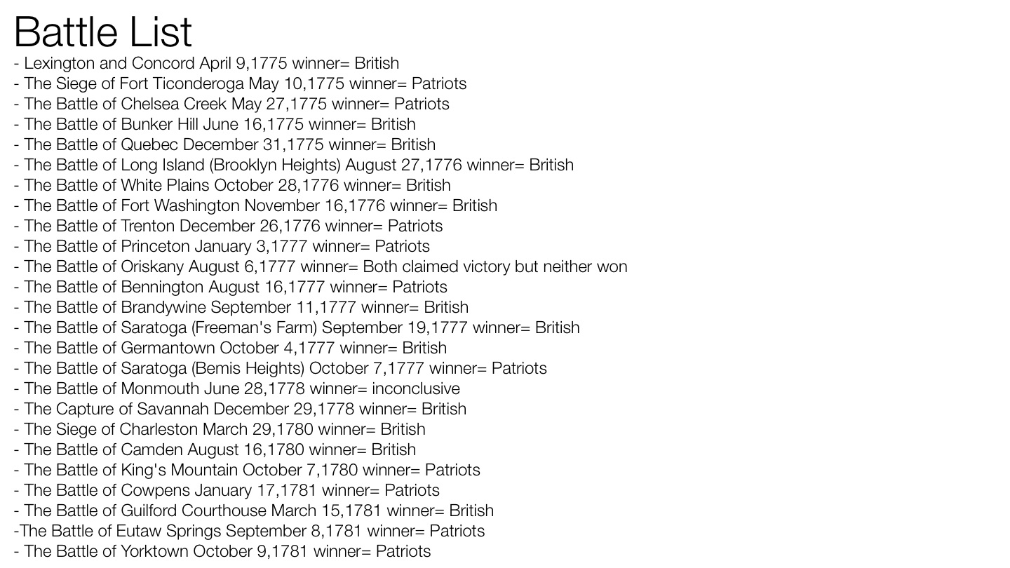 - The Siege of Fort Ticonderoga May 10,1775 winner= Patriots