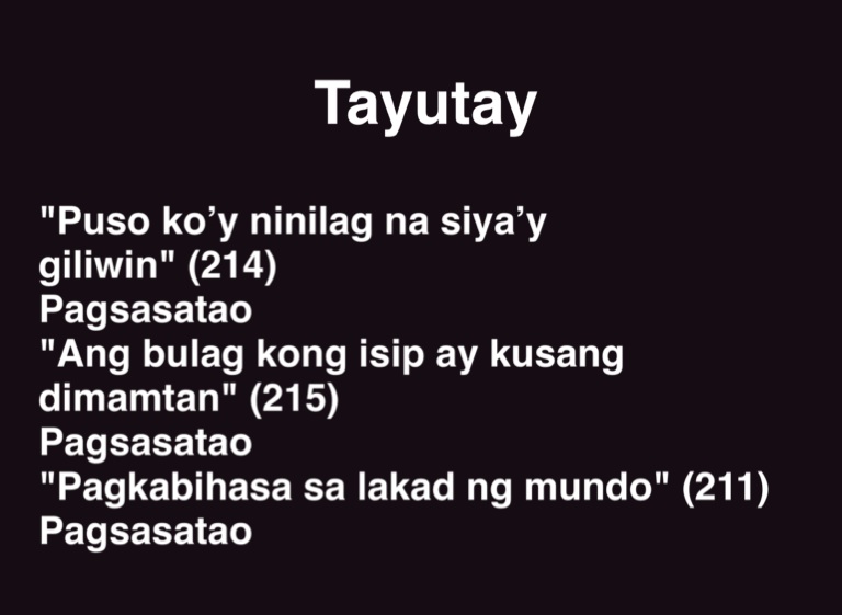 "Puso ko’y ninilag na siya’y giliwin" (214)