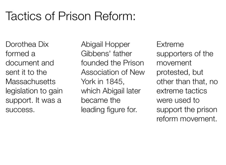 Extreme supporters of the movement protested, but other than that, no extreme tactics were used to support the prison reform movement.
