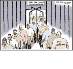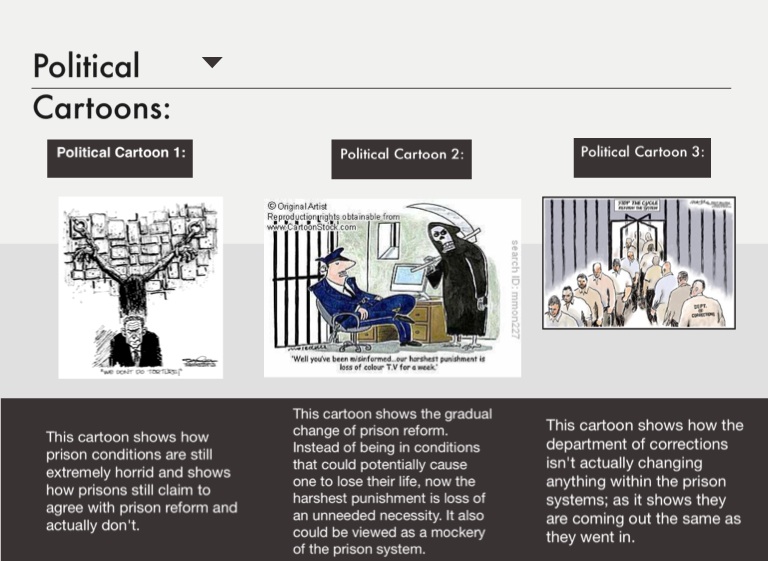 This cartoon shows how prison conditions are still extremely horrid and shows how prisons still claim to agree with prison reform and actually don't.