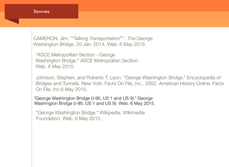 CAMERON, Jim. ""Talking Transportation"" : The George Washington Bridge. 20 Jan. 2014. Web. 6 May 2015.