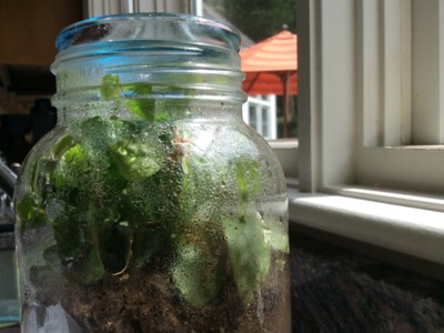 The condensation builds up on the top of the terrarium kind of like in the clouds.