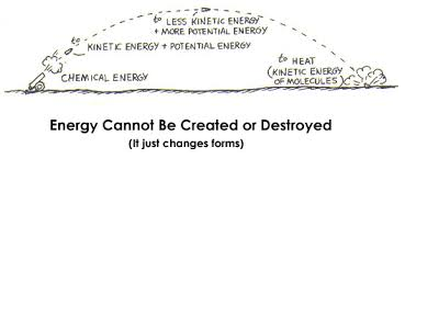 The law of conservation of energy- is the law of science that states that energy cannot be created or destroyed, but only changed from one form into another or transformed from one object to another,