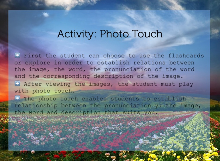 ➡️ After viewing the images, the student must play with photo touch.
