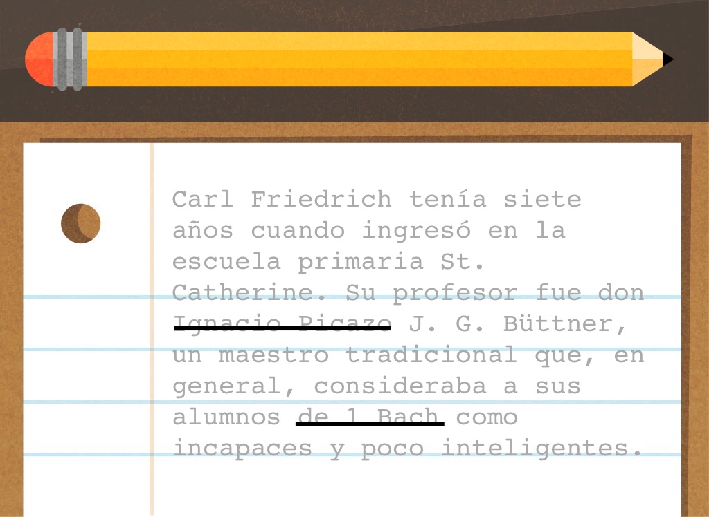 Carl Friedrich tenía siete años cuando ingresó en la escuela primaria St. Catherine. Su profesor fue don Ignacio Picazo J. G. Büttner, un maestro tradicional que, en general, consideraba a sus alumnos de 1 Bach como incapaces y poco inteligentes.