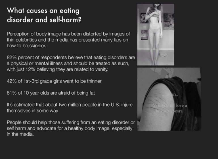 People should help those suffering from an eating disorder or self harm and advocate for a healthy body image, especially in the media.