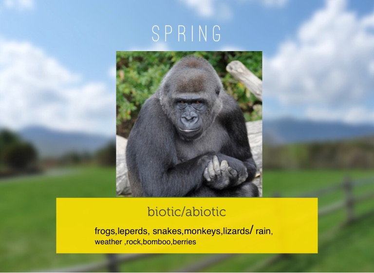 frogs,leperds, snakes,monkeys,lizards/ rain, weather ,rock,bomboo,berries