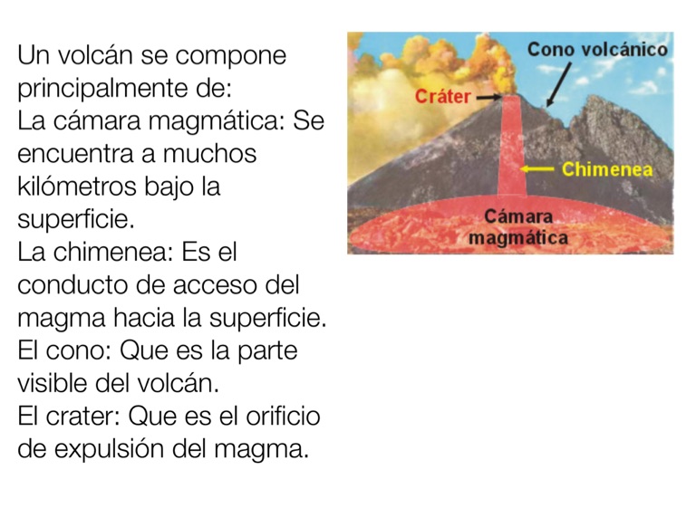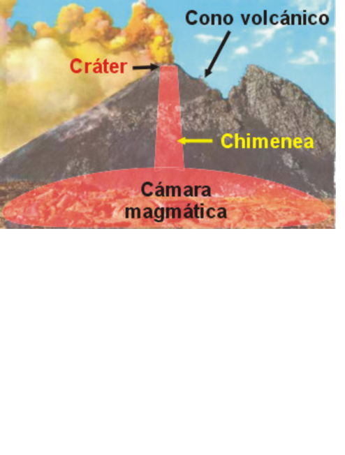 La chimenea: Es el conducto de acceso del magma hacia la superficie.