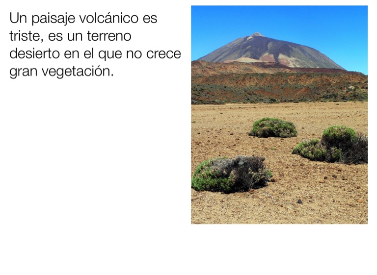 Un paisaje volcánico es triste, es un terreno desierto en el que no crece gran vegetación.