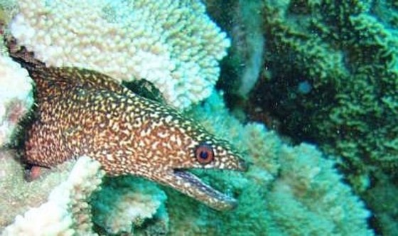 The eel lives in the coral and gets protection. The eel eats animals attacking the coral.