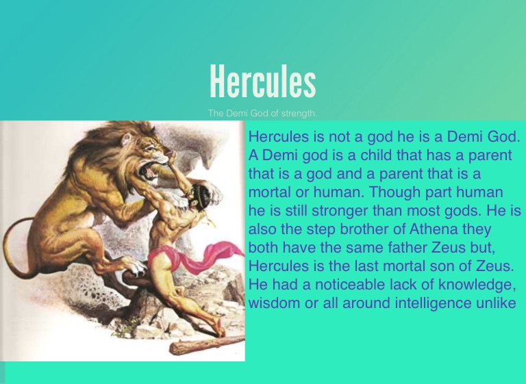 Hercules is not a god he is a Demi God. A Demi god is a child that has a parent that is a god and a parent that is a mortal or human. Though part human he is still stronger than most gods. He is also the step brother of Athena they both have the same father Zeus but, Hercules is the last mortal son of Zeus. He had a noticeable lack of knowledge, wisdom or all around intelligence unlike his step sister Athena.