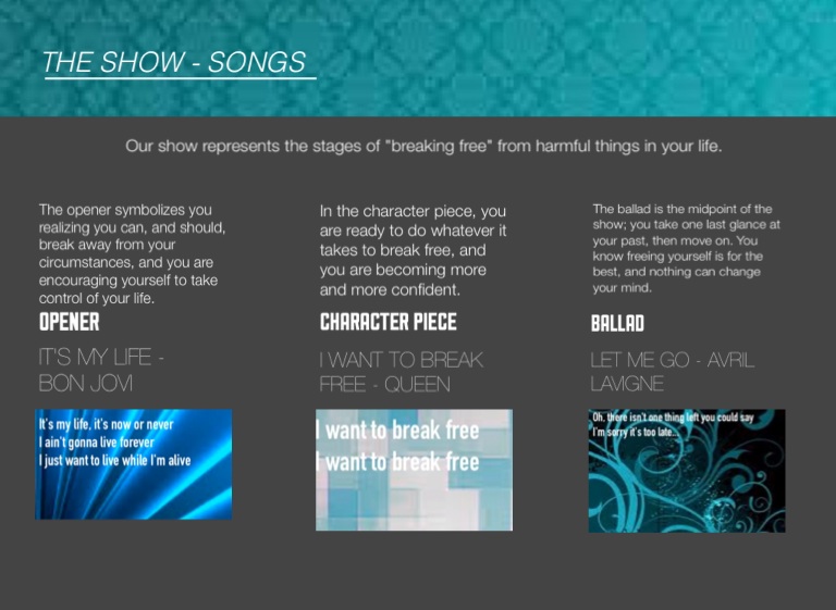 Our show represents the stages of "breaking free" from harmful things in your life.