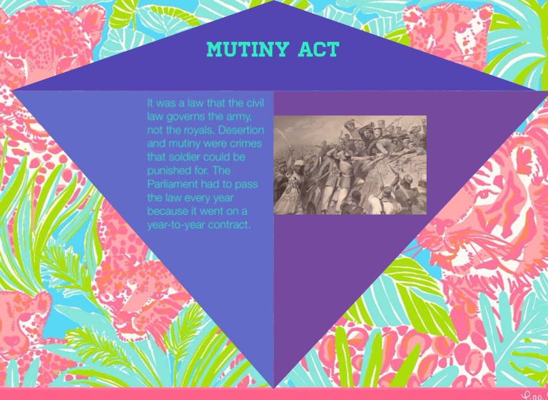 It was a law that the civil law governs the army, not the royals. Desertion and mutiny were crimes that soldier could be punished for. The Parliament had to pass the law every year because it went on a year-to-year contract.