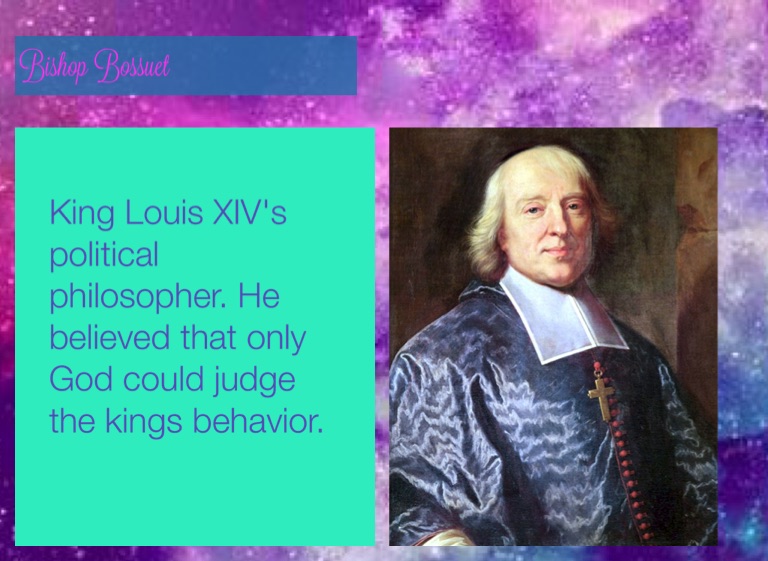 King Louis XIV's political philosopher. He believed that only God could judge the kings behavior.