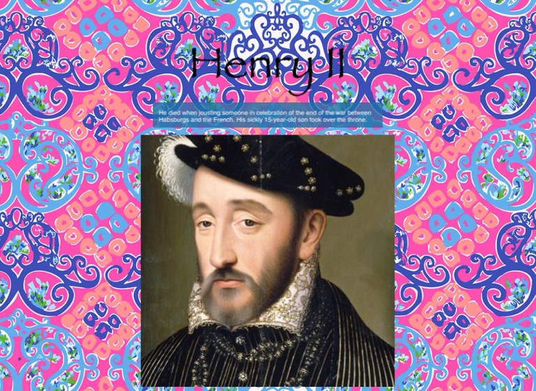 He died when jousting someone in celebration of the end of the war between Habsburgs and the French. His sickly 15-year-old son took over the throne.