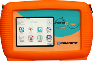 The Dranetz PowerGuide 4400 is a portable, hand-held, power quality meter/monitor. Equipped with 8 independent channels, the 3-phase PowerGuide 4400 is the only advanced power monitoring instrument to incorporate a color touch screen into its lightweight design. Automated setups provide instant detection of circuits and configurations, ensuring that the instrument is ready to successfully collect data. Users can select the length and mode of data collection, including troubleshooting, data logging, power quality surveys, energy and load balancing.