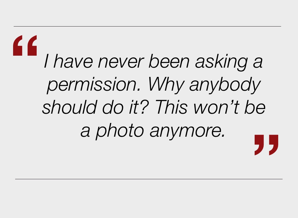 I have never been asking a permission. Why anybody should do it? This won’t be a photo anymore.
