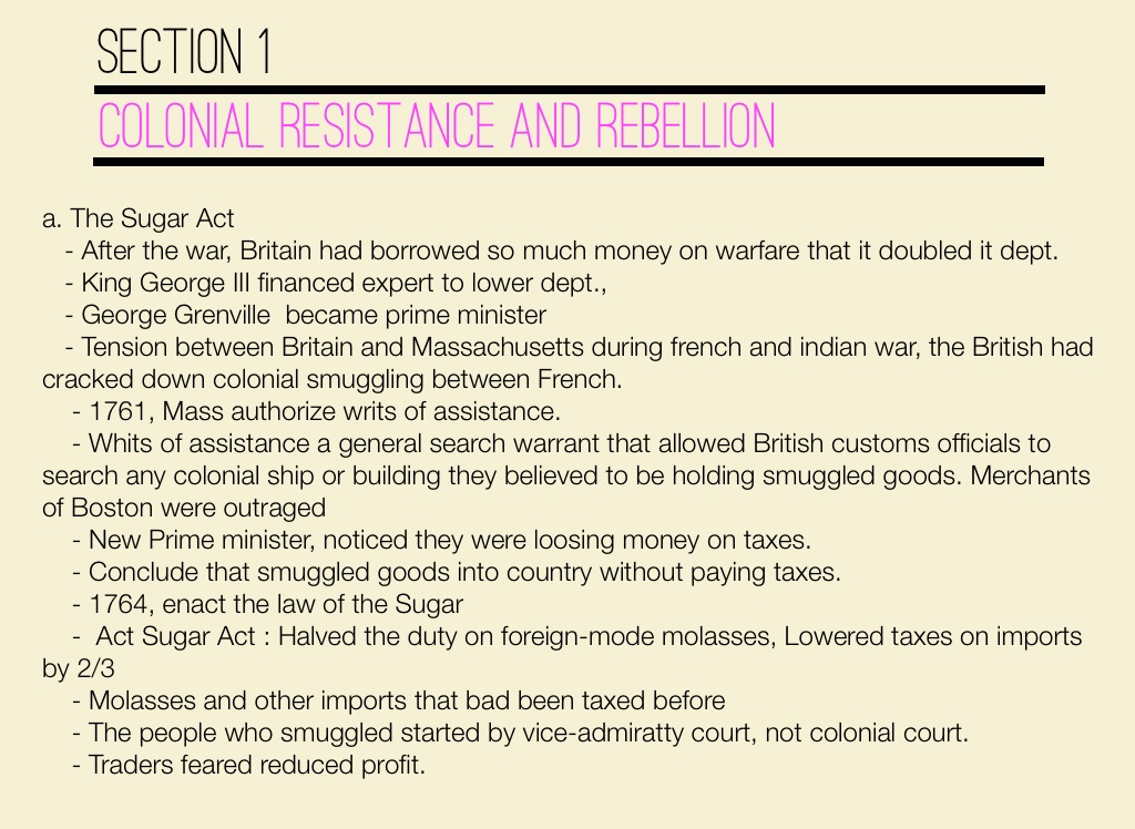 - Act Sugar Act : Halved the duty on foreign-mode molasses, Lowered taxes on imports by 2/3