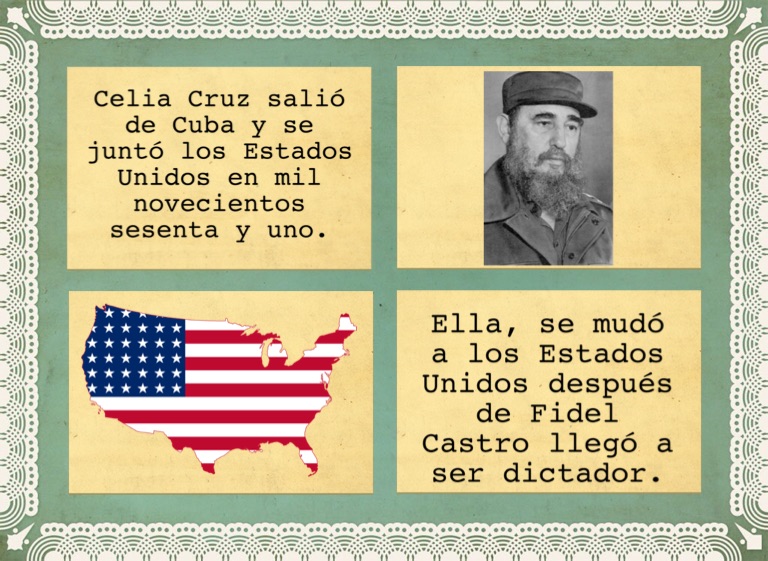 Celia Cruz salió de Cuba y se juntó los Estados Unidos en mil novecientos sesenta y uno.